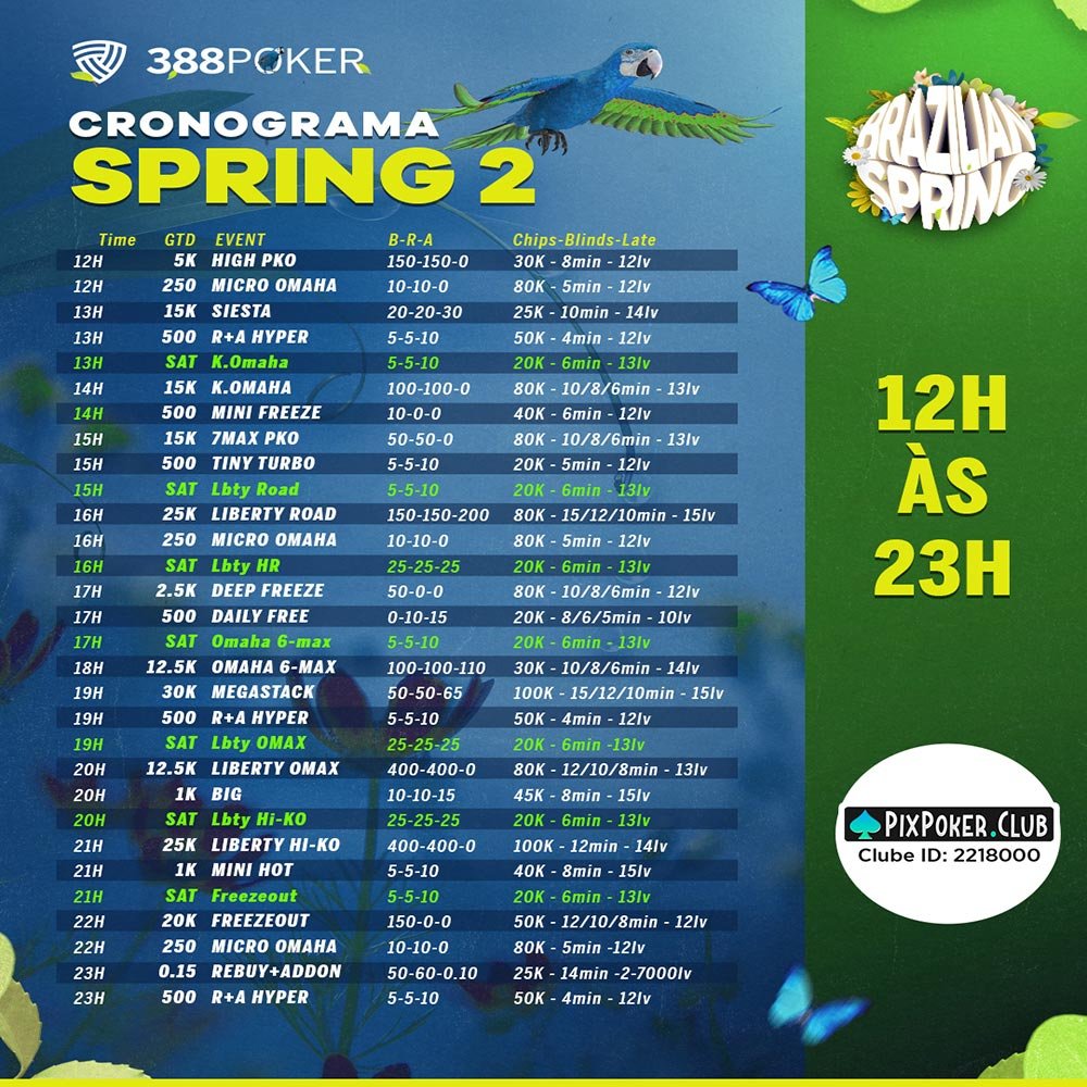 Começou nessa sexta dia 23/09/22 a Série muito aguardada no PPPoker, a Brazilian Spring! Serão vários torneios especiais que irão acontecer até o dia 09/10/22.